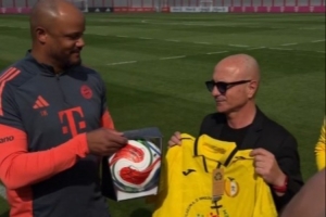 全部由业余球员组成的梵蒂冈队在今日造访了拜仁训练基地,孔帕尼和诺伊尔作为代表和梵蒂冈队进行了会面。