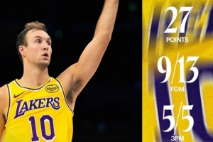 赛后,湖人官推发布肯纳德本场数据海报,并写道:“大舞台,关键表现!”